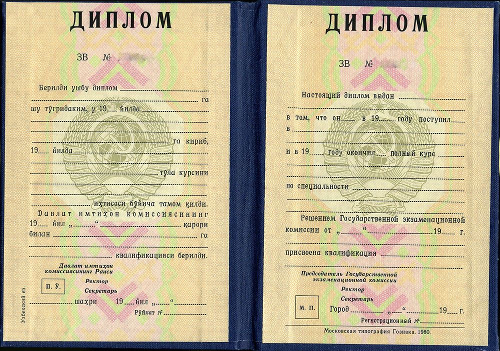• Документ: Диплом СССР республики Узбекистан